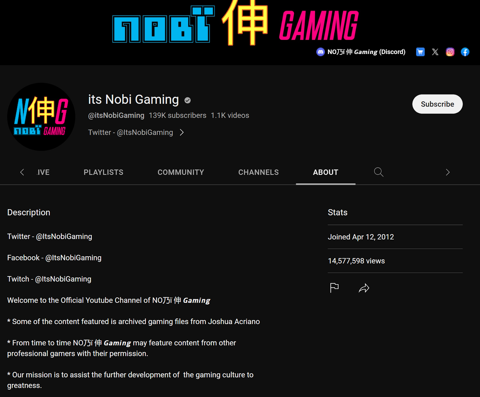 That’s a pretty decent subscriber count, plenty of videos, too! 14 million lifetime views!? Color me impressed. This would certainly indicate that Mr. Rivers, for all of the prior red flags, is obviously doing something right on YouTube. Having said that, something caught my eye. Notice the ‘Stats’ line, particularly the join date? April 12, 2012. Had Mr. Rivers been operating a YouTube account titled ‘itsNobiGaming’ for over a decade and only recently hit big? What’s his most popular videos?